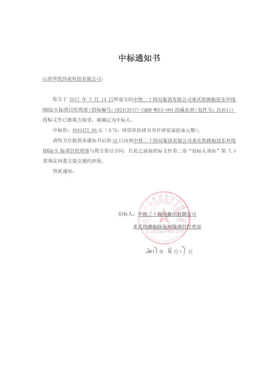 下一篇:恭贺我公司中标中铁一局集团物资工贸有限公司临海东、昌邑南制梁场外加剂采购项目